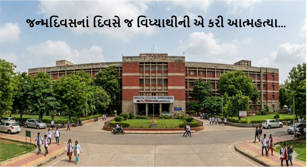 અમદાવાદની બી. જે. મેડિકલ કોલેજમાં બીજા સેમેસ્ટરમાં અભ્યાસ કરતી વિધ્યાર્થીને એ સોમવારે એટલે 13 એપ્રિલનાં દિવસે બપોરે તેના જન્મદિવસ પર, ૧૯ વર્ષીય એમ. બી. બી. એસ. વિદ્યાર્થીનીએ તેના હોસ્ટેલ રૂમમાં આત્મહત્યા કરીને આત્મહત્યા કરી. જૂનાગઢના કેશોદની વતની વિધ્યાર્થીની, ગયા વર્ષે બી. જે. મેડિકલ કોલેજમાં જોડાઈ હતી અને તે તેના પ્રથમ વર્ષના એમ. બી. બી. એસ. ના બીજા સેમેસ્ટરમાં હતી.